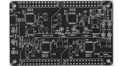RAMN 是一组 PCB(印刷电路板),可组合使用以模拟 ECU(电子控制单元)的 CAN 或 CAN-FD 网络。