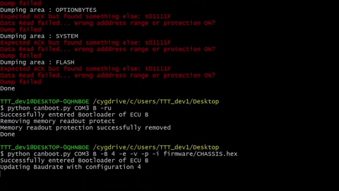 四个 ECU 均可通过 USB 使用微控制器的内置硬件引导加载程序进行重新编程:无需 JTAG 编程器。