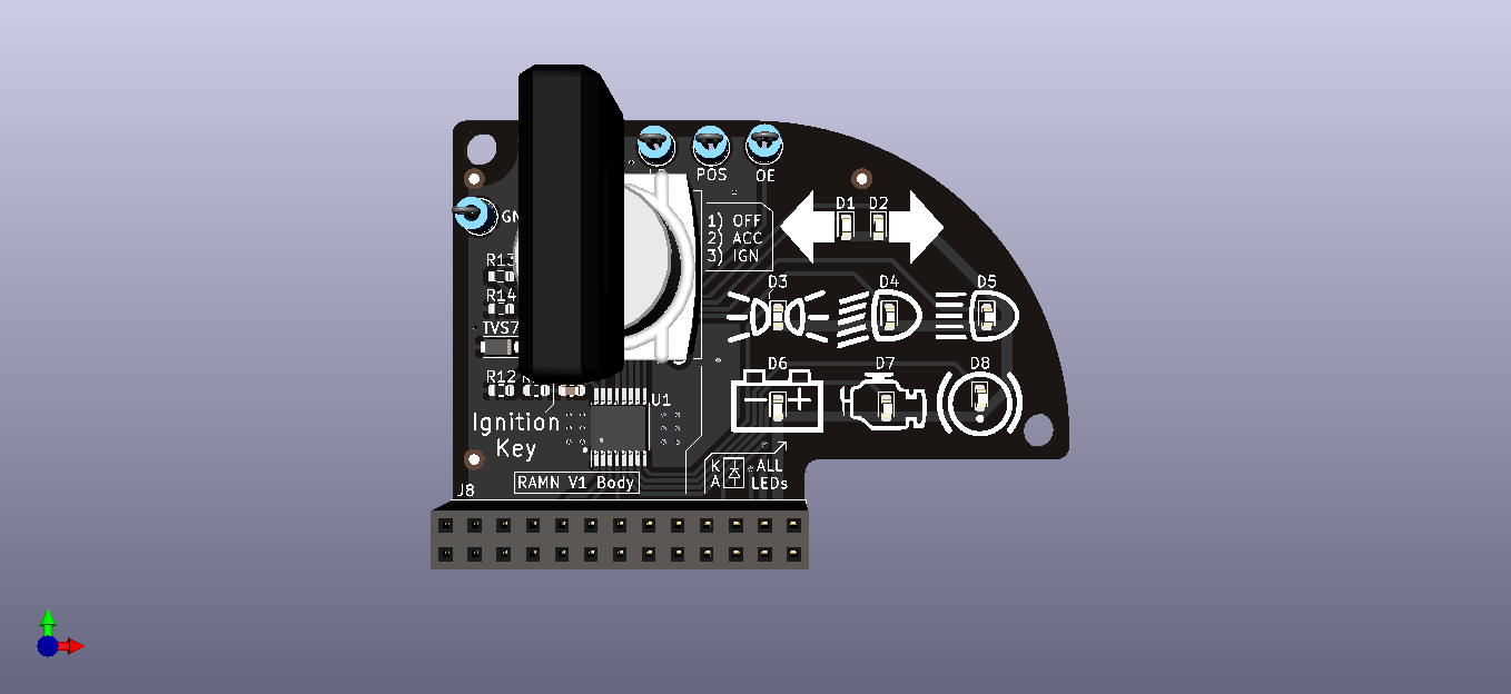 灯光由 8 个 LED(D1~D8)模拟,这些 LED 位于靠近丝印标记的位置,其图案类似于仪表盘上的符号: