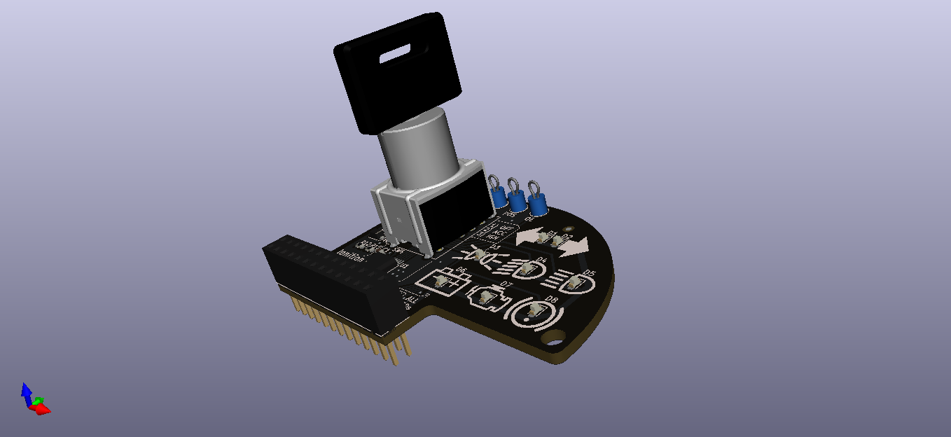 该发动机钥匙由 NKK 开关的 SK14EG13 模拟实现。SK14EG13 是一种 SP3T 开关(单刀三掷)。因此,其原理图相当简单: