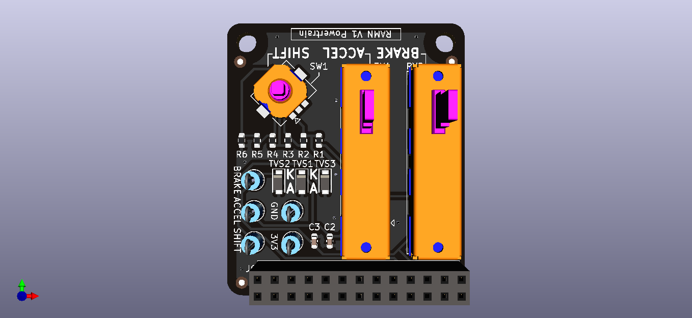 换挡杆由一个具有中央按压功能的四方向操纵杆模拟实现。所选元件为阿尔卑斯阿尔派公司的 SKRHADE010。