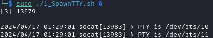 这将创建一对虚拟串行设备,在本例中为 /dev/pts/3 和 /dev/pts/4。