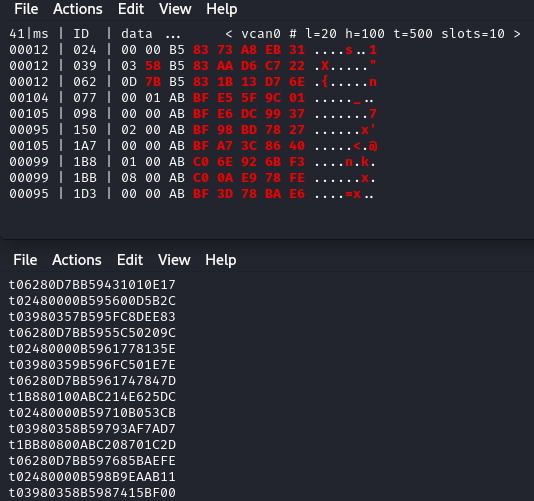 例如,您可以在访问/dev/pts/4 上的串行终端的同时,观察 vcan0 上的 CAN 流量: